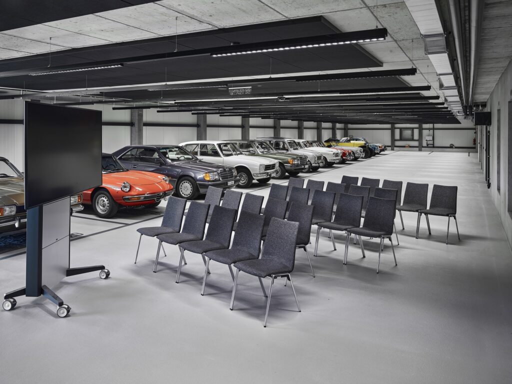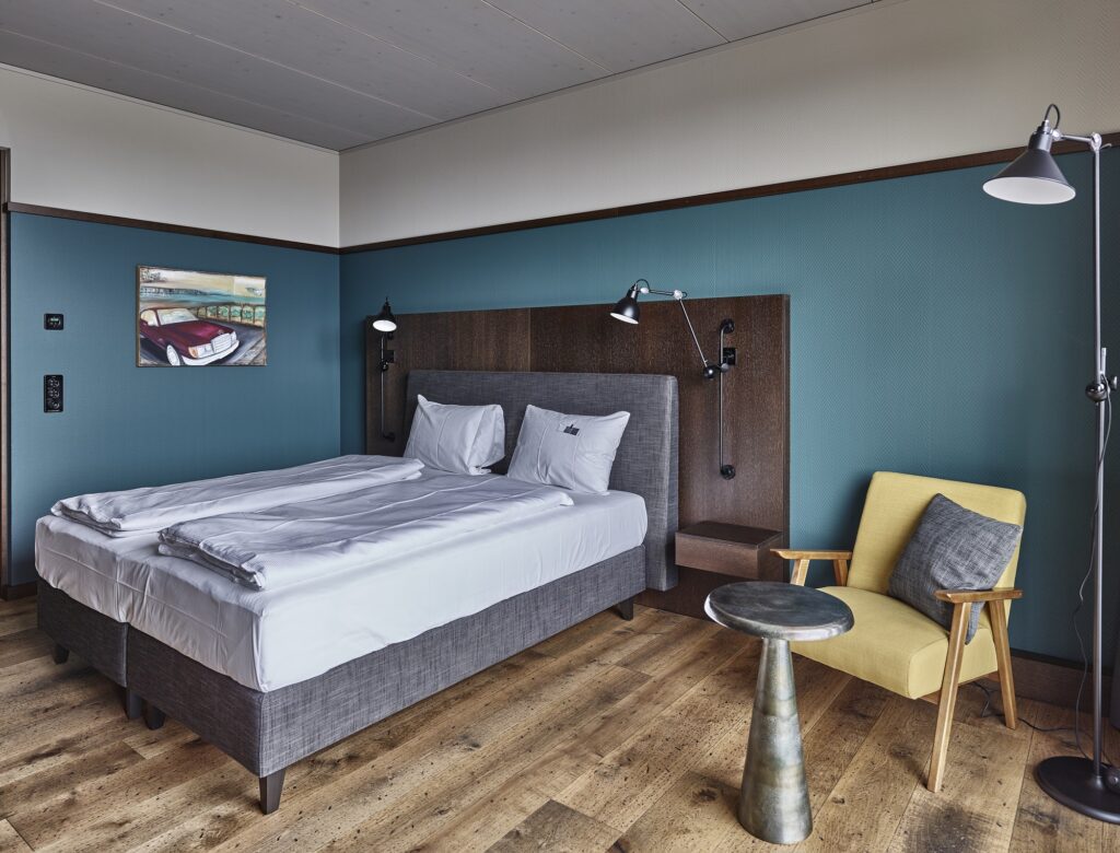 The overall concept of the Autohalle includes 20 modern, air-conditioned double rooms. These rooms not only offer overnight accommodation for car enthusiasts, but also welcome business travelers and families. The event rooms offer flexibility and an exceptional ambience, ideal for business and private events.